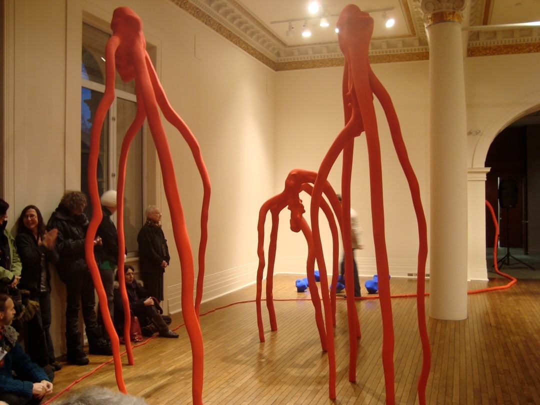 Chorégraphie de danse contemporaine et circassienne inspirée des sculptures de l’exposition Masse critique de l’artiste canadien Shayne Dark. Création in situ, la chorégraphie s’inspire des formes, des couleurs, de l’expression et du mouvement des sculptures de Shayne Dark. Deux créatures prennent vie dans l’espace muséal. Elles s’animent, se déplacent, se rencontrent, se transforment. Le spectateur assiste à une mise en mouvement des sculptures de Shayne Dark, à une manifestation physique de la tension, contorsion, étrangeté et sensualité inhérente aux oeuvres. Présenté en première au Musée des beaux-arts de Sherbrooke en janvier 2012. Lire l'article